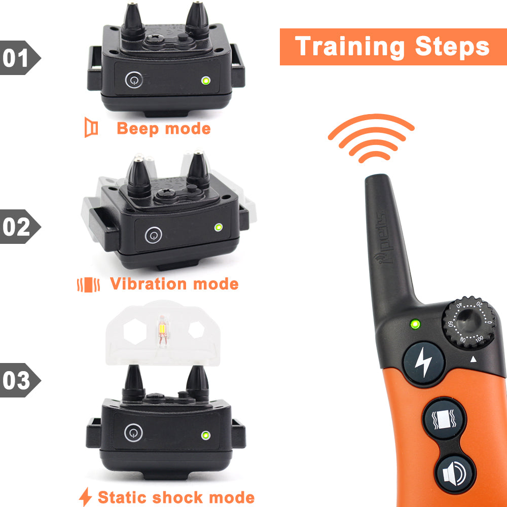- Waterproof & Rechargeable:100% waterproof receiver and water-resistant transmitter; Dog electronic collar with rechargeable remote and collar, you can charge both simultaneously to save time