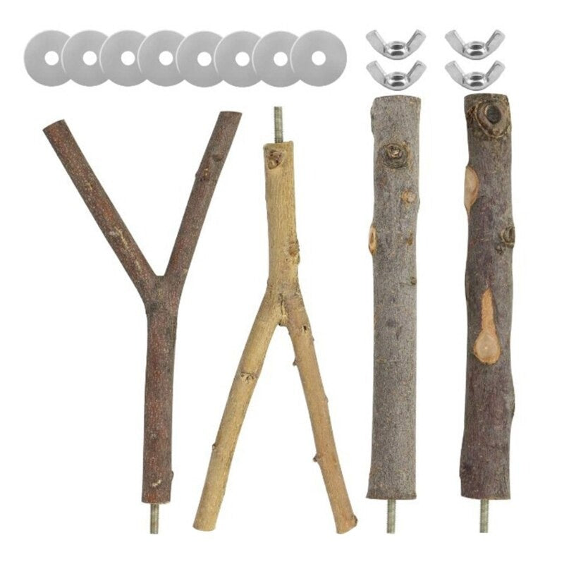 This 4-piece set of natural wood perch for birds is made of high-quality wood and is suited for their activities, which include standing on tall objects like trees in the wild,