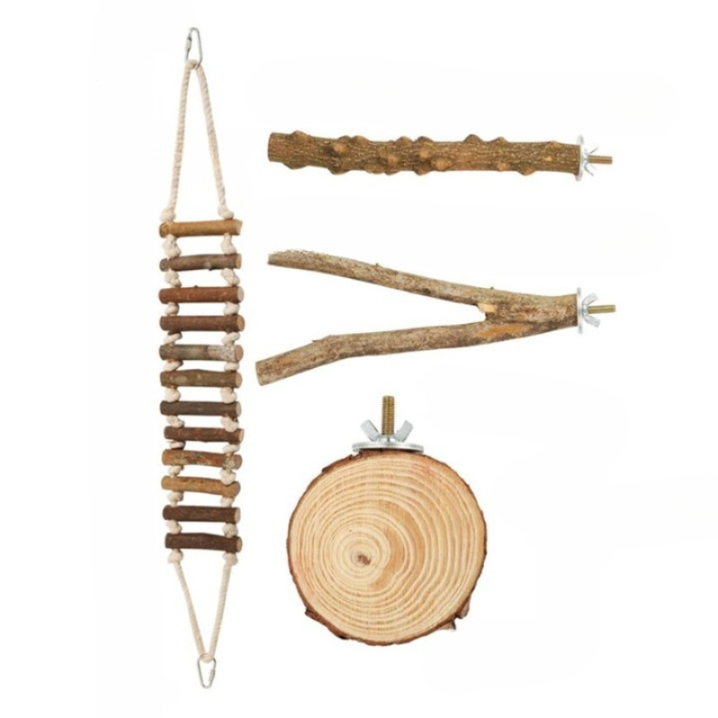 These 4 Pieces Bird Perch Stand Toys are made of 100% natural wood and are environmentally friendly. Each bird perch stand with a metal wing nut and a built-in bolt, easy to be hung in the cage and stable. These bird toys can also be used as wonderful cage decorations in addition to being playthings for the birds.