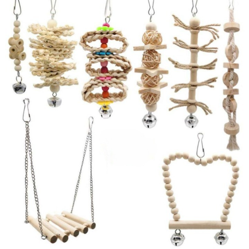The 8 Pieces Birds Cage Toy Set are multifunctional bird toy designed to keep your bird's feet at rest while giving them a chance to exercise. These are safe to use and provide an interesting boost for pet climbing and exploration.