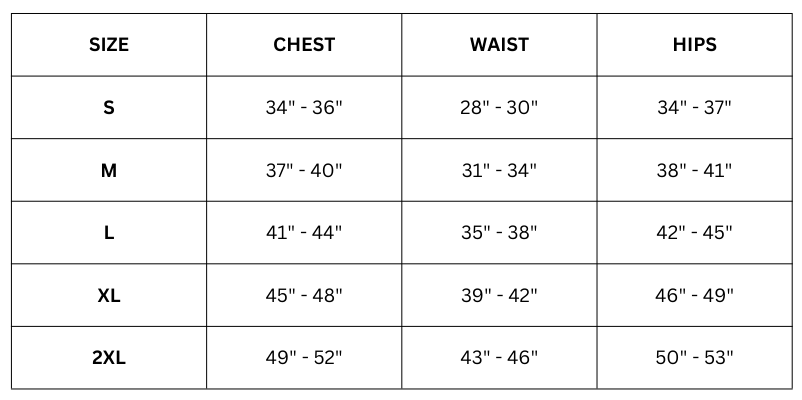 Size Chart (Inches):