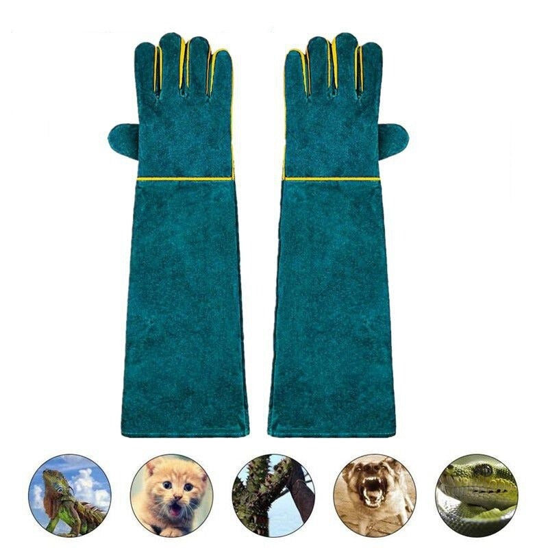 With only a few spots or stains on the leather, these gloves are practically new. The application and material quality are identical to the new. Although these gloves have not been worn, there are some stains or spots on them due to the natural tendency of leather. The Animal Anti-bite Glove is suitable for training dogs of any size.