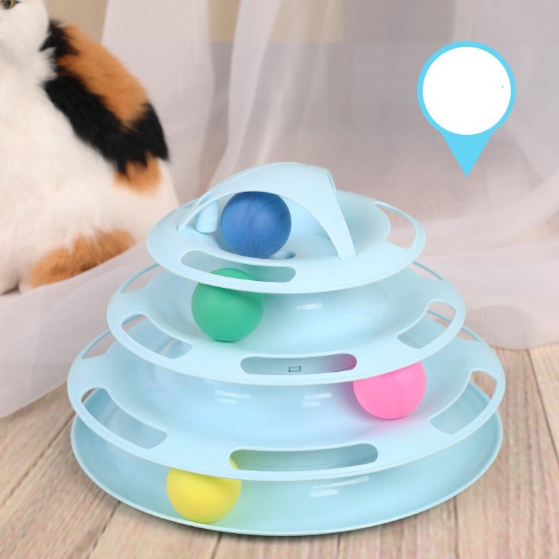 The track count refers to the number of concentric circular rails the balls roll around. A 4-track version has more rolling surfaces and ball interaction points, which generally extends play time slightly. However, the engagement difference is modest — both are equivalent for most cats.