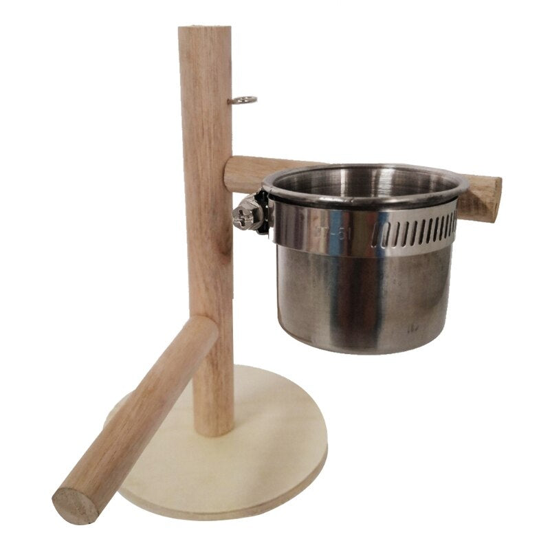 This Birds Feeding Dish Cup Wooden Standing Toy is made of high-quality wood and includes a stainless steel cup for feeding pet parrots. It can also be used to deliver food or medication. It is suitable for small and medium-sized parrots and is durable, easy to use, and clean.