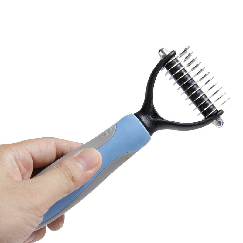 The Pet Trimming Comb is an excellent brush for removing tangled mats from your pet's fur. It also aids in the finishing and combing of the pet's coat, giving it a healthy, shiny appearance Your pet would appreciate being brushed.