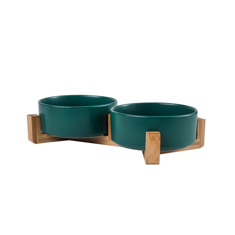 These ceramic cat feeding bowls are available in five colors (Green, Yellow, Gray, White, Pink) and three configuration options: Single Bowl, Single Bowl with Stand, and Dual Bowl with Stand. The stand options elevate the bowls for more comfortable eating.