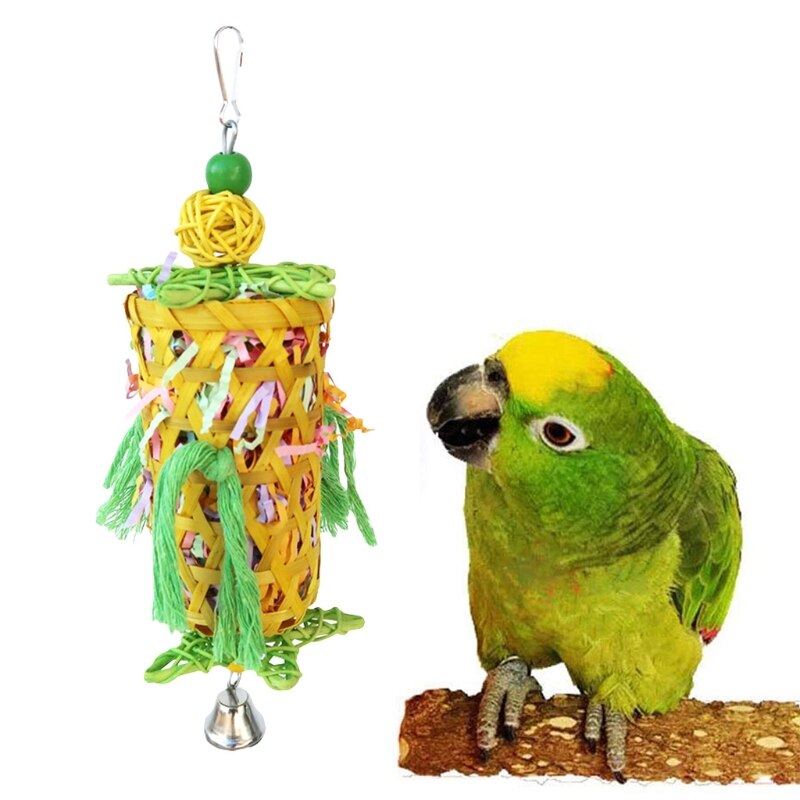 Add some flair to your bird's cage with this Chew Toy For Birds. Not only will your bird love the colorful addition to its home, but it'll also enjoy the reflective design and paper chew toy. The attached hanging element will ring as your bird plays, providing auditory stimulation. This is the perfect toy for any bird that values playing and chewing at the same time.