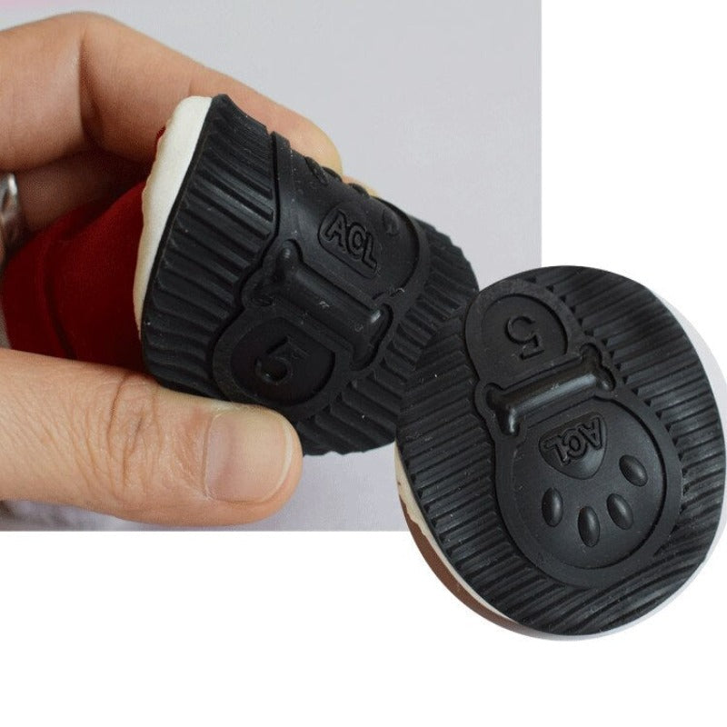 By protecting the dog's paws from the hot sidewalk in the winter, dog shoes can prevent them from getting chilled on a windy day. The perfect paw protection for dogs is these Christmas Red Rain Snow Boots! Since they are lightweight and waterproof, they are easy to clean and maintain.