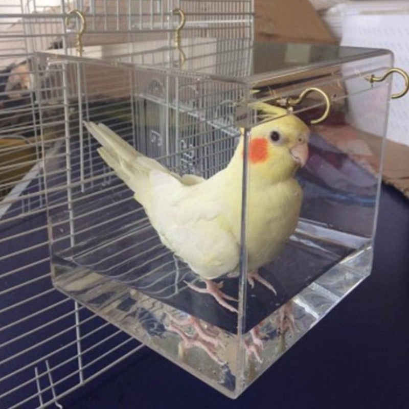 This Deluxe Bird Bath Box Cage gives birds a friendly space to keep themselves clean and uphold great hygiene. It is made durable, non-toxic, and safe. The Universal Clips are made to attach securely to mostly all wired bird cages.