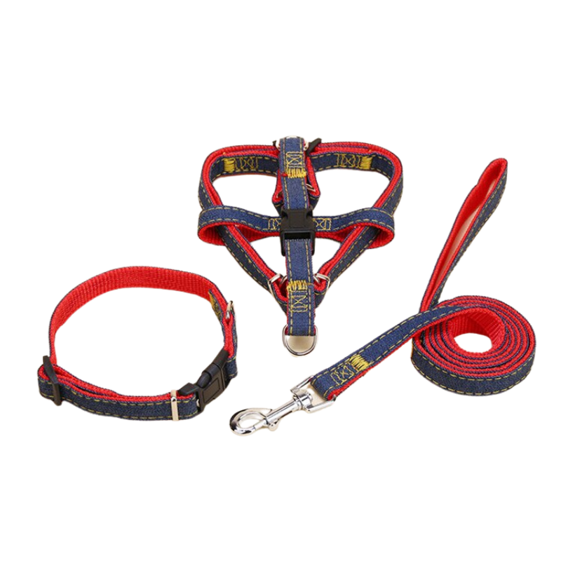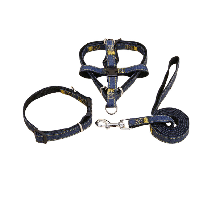Have a blast walking your pup in style with this Denim Harness And Leash Set. The leash and harness are both made from durable denim, ensuring a long-lasting product that can keep up with even the most energetic dogs. The solid pattern is timeless and stylish, making this set perfect for any dog owner.