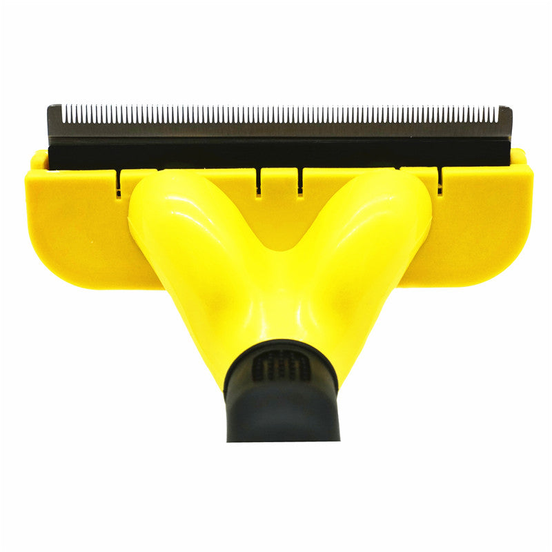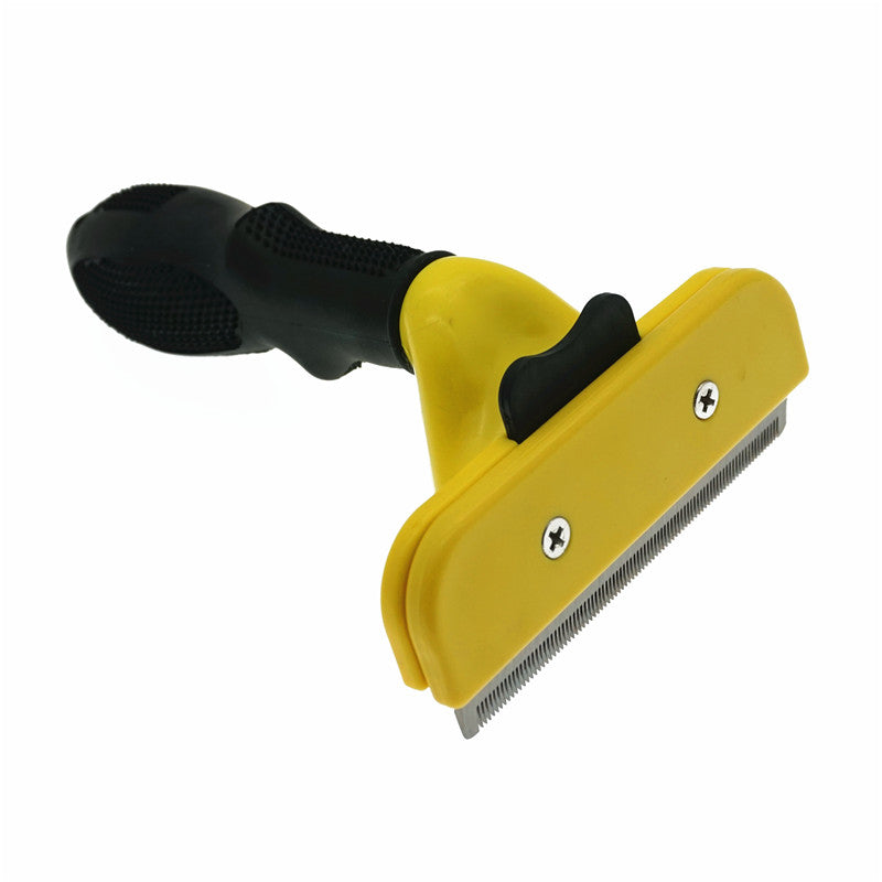 Want to clean your dog's fur without using harsh cleaners or bristly combs? Use the Dog Hair Shedding Comb instead! For maintaining the finest possible appearance of your dog's fur, use this simple cleanser. The plastic base guarantees that the fur on your pet is constantly kept and tidy.