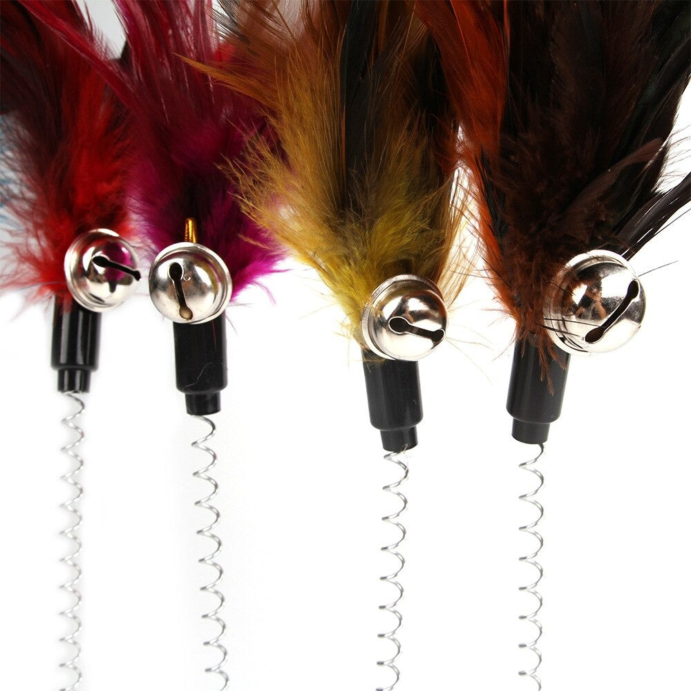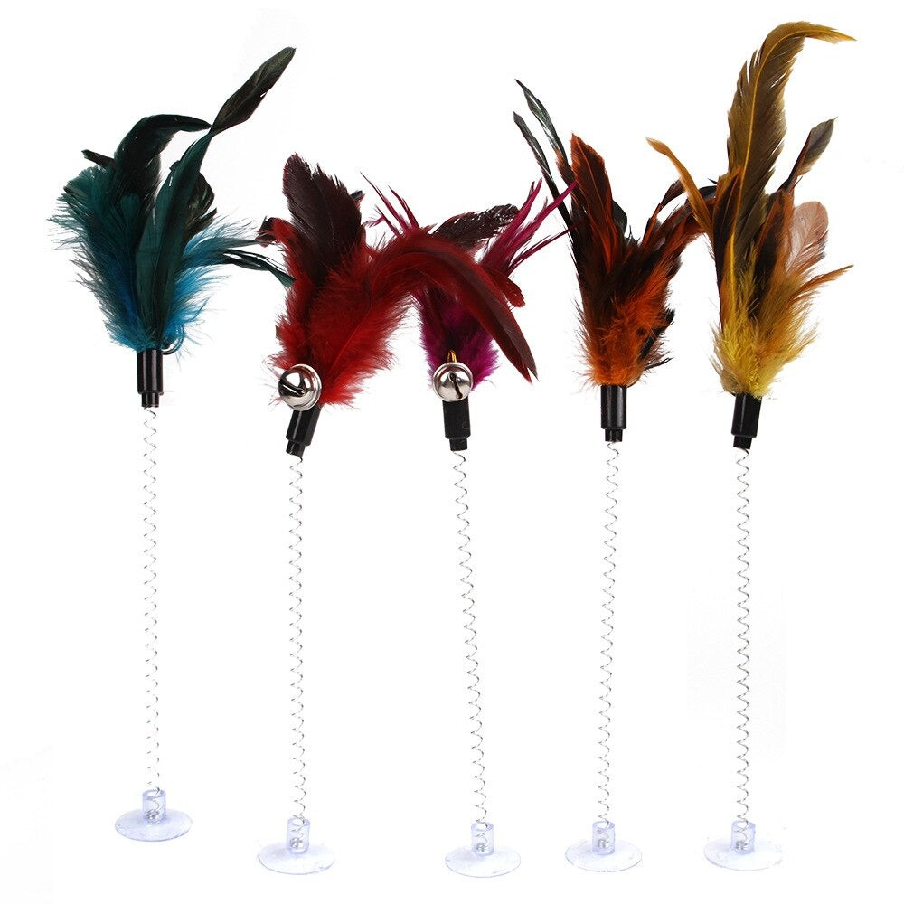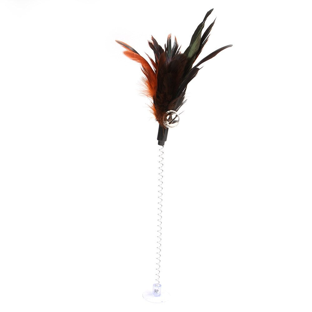 Elastic Feather Bottom Toy is made of premium materials which make it safe for cats. These materials are also highly elastic and stimulate the cat's natural hunting instinct. The toy is attached to a long, elastic band that makes it easy for cats to bat around and chase.
