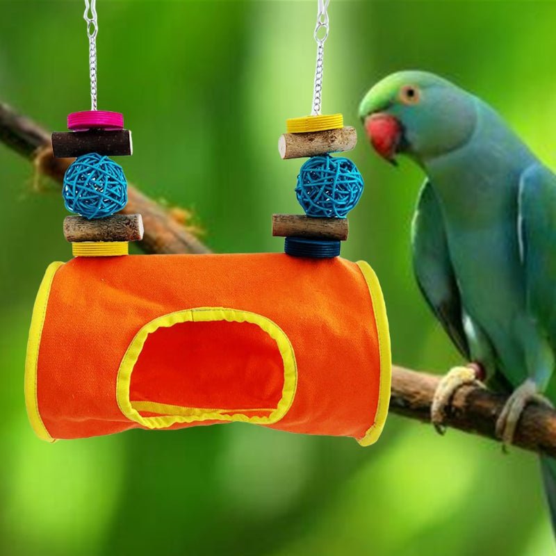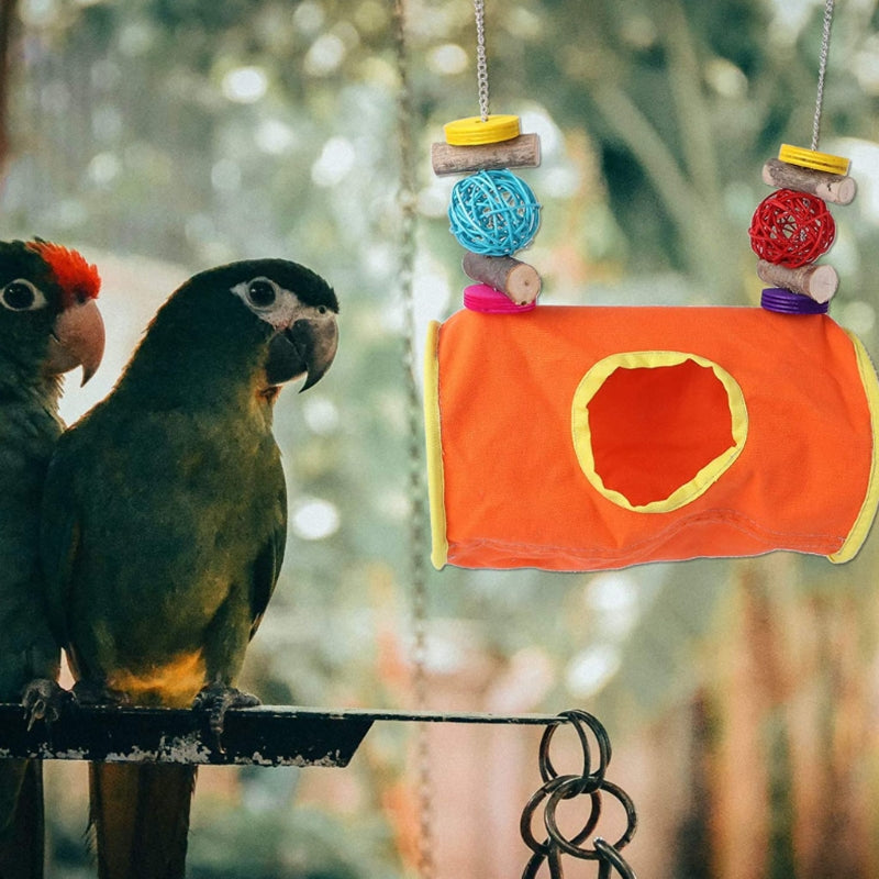 A hollow enclosed space mimics a natural nest cavity, which gives birds a sense of security and privacy that open perches do not provide. Many birds sleep more restfully in an enclosed hammock because it reduces their instinctive vigilance against overhead predators during sleep.