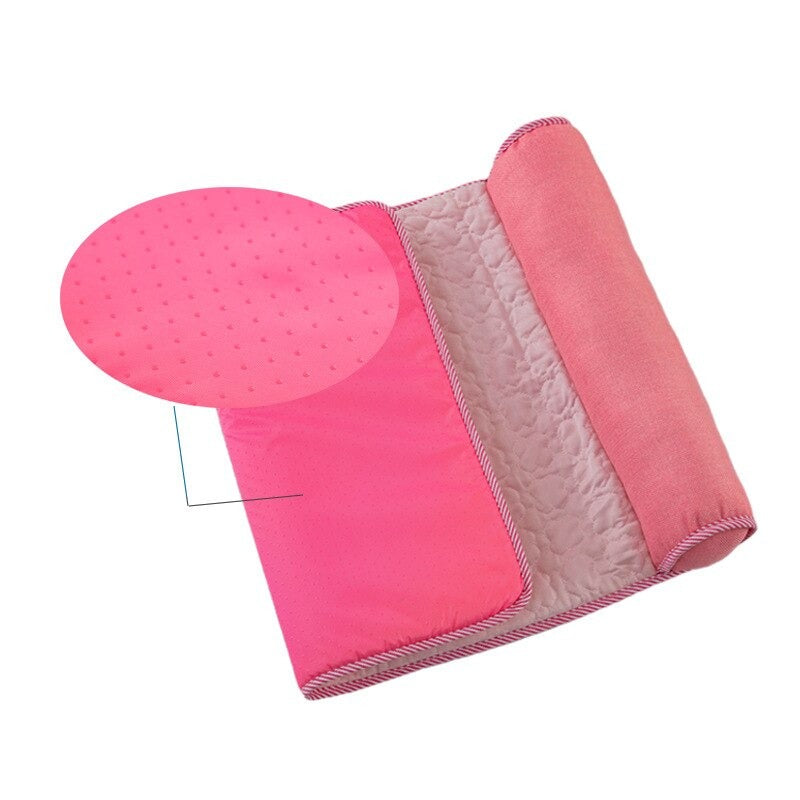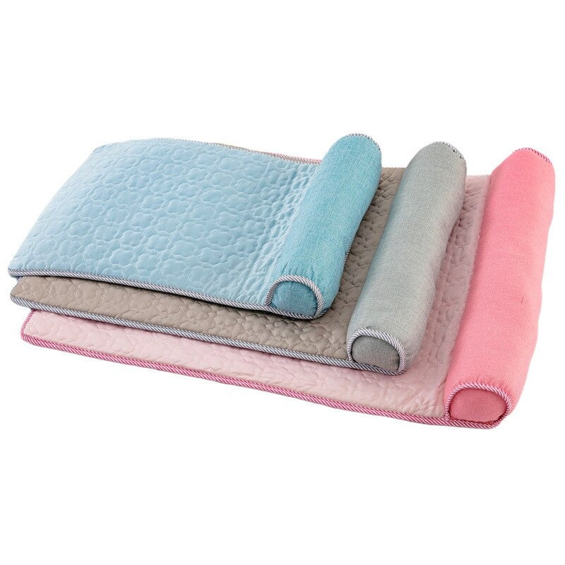 Linen is a naturally breathable, moisture-wicking fabric that does remain cooler to the touch than polyester or fleece in warm weather. It does not actively cool like a gel cooling mat, but it transfers body heat away more efficiently. On a hot day above 28°C, a linen mat on a cool tile floor is noticeably cooler than a polyester mat in the same position.