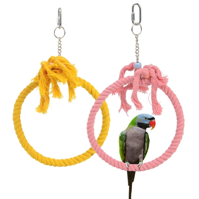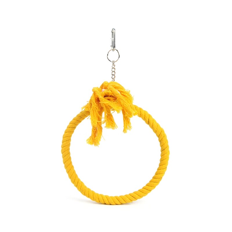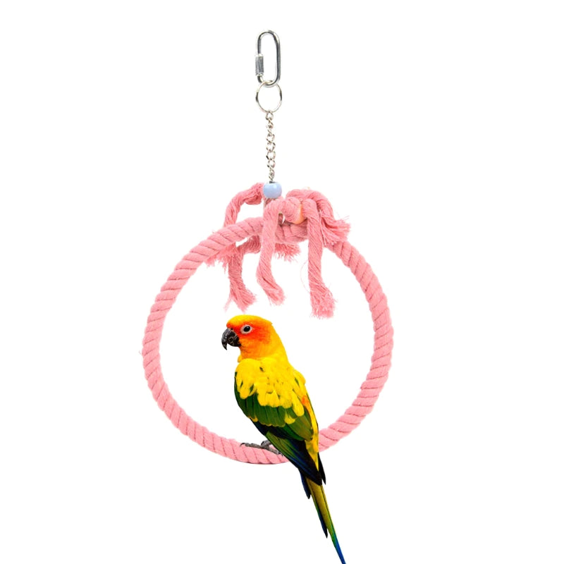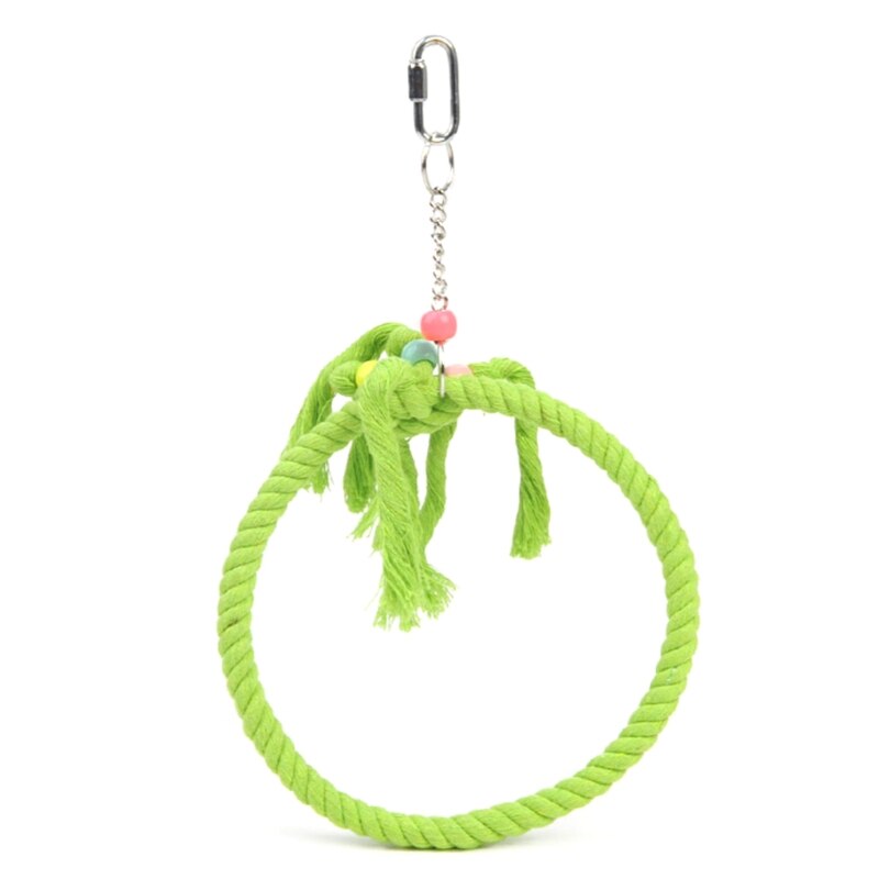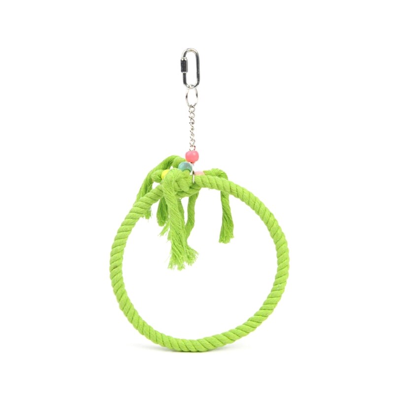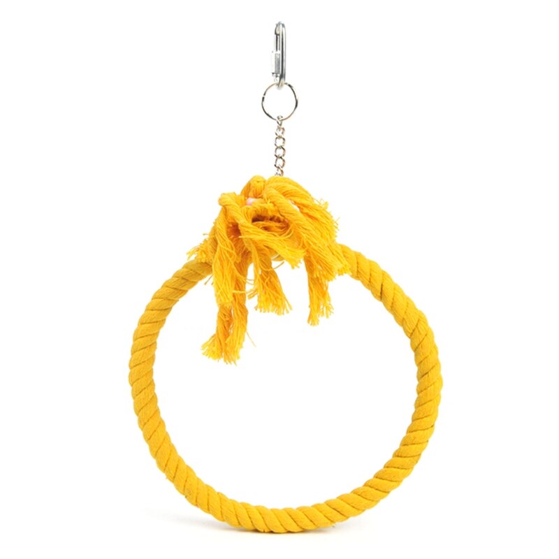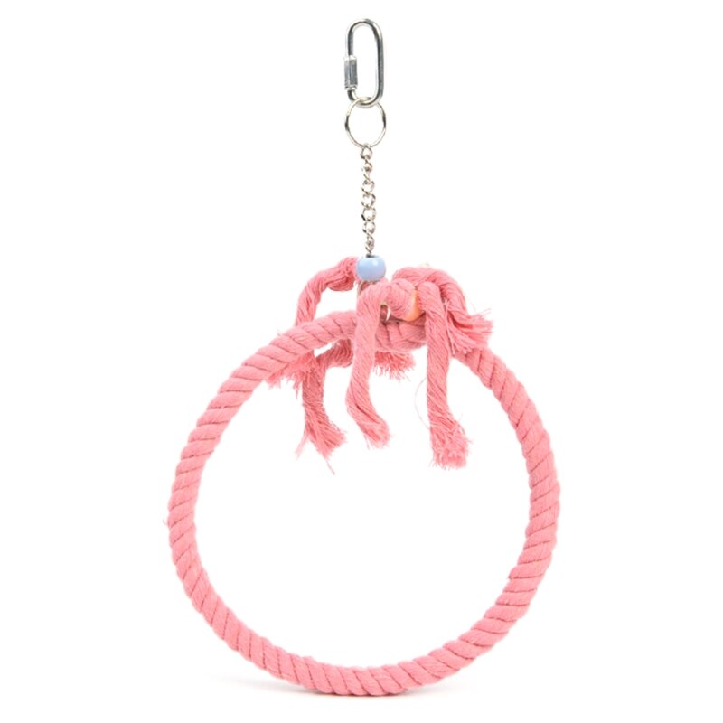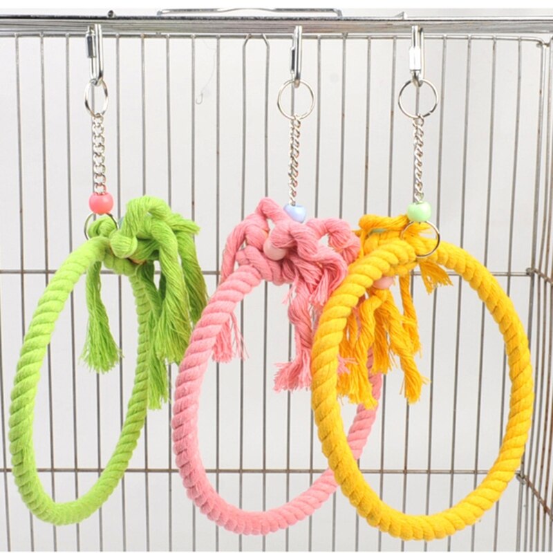A lovely Playing Swing Rope For Birds Cage. This hanging swing rope is the ideal method to connect with your feathery companions in a secure and enjoyable manner. It's a stunning addition to the decor of your birdhouse and is made of durable cotton and metal. While you observe them safely inside your home, let your birds enjoy themselves.