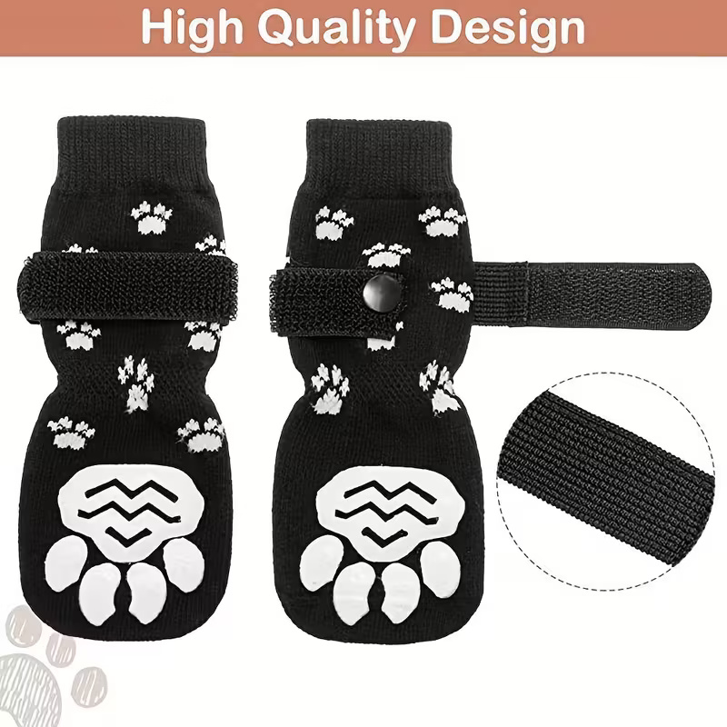 The Set Of 4 Non Slip Dog Socks With Waterproof Design are a must-have for any dog owner who cares about their pet’s safety and comfort. Whether you’re walking in the rain, playing outdoors, or simply protecting your dog’s paws from rough terrains, these socks are a practical and reliable solution. With their and waterproof design, they provide all-weather prevention that will keep your dog happy and friendly. Get your pet these socks today and make every walk a comfortable and intact experience!