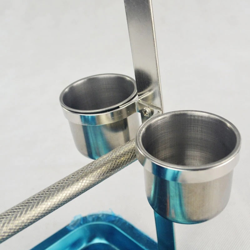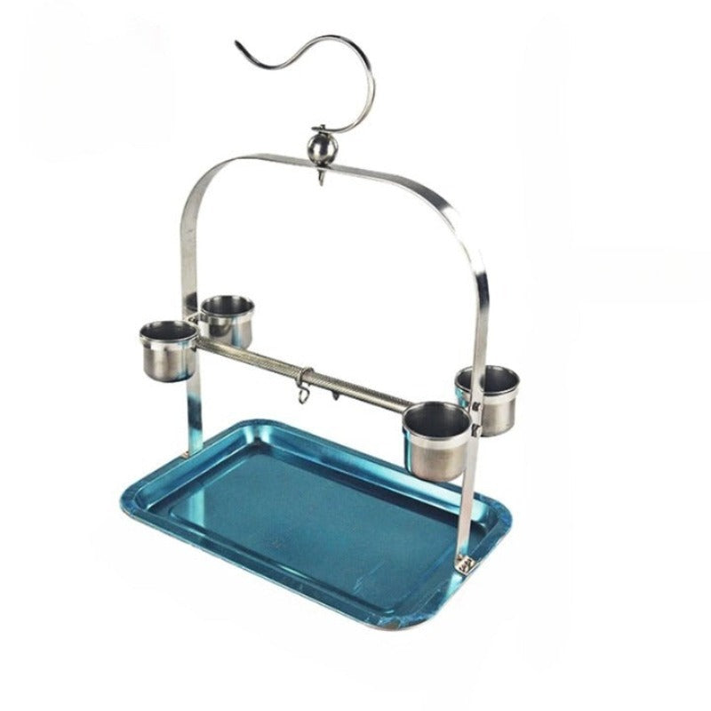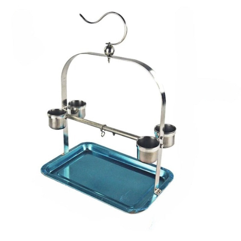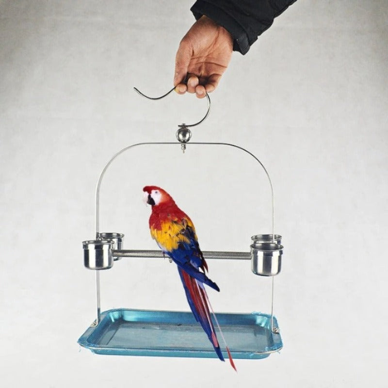 Made of stainless steel, durable and practical. A horizontal bar is sturdy enough to shoulder your birds resting on it.