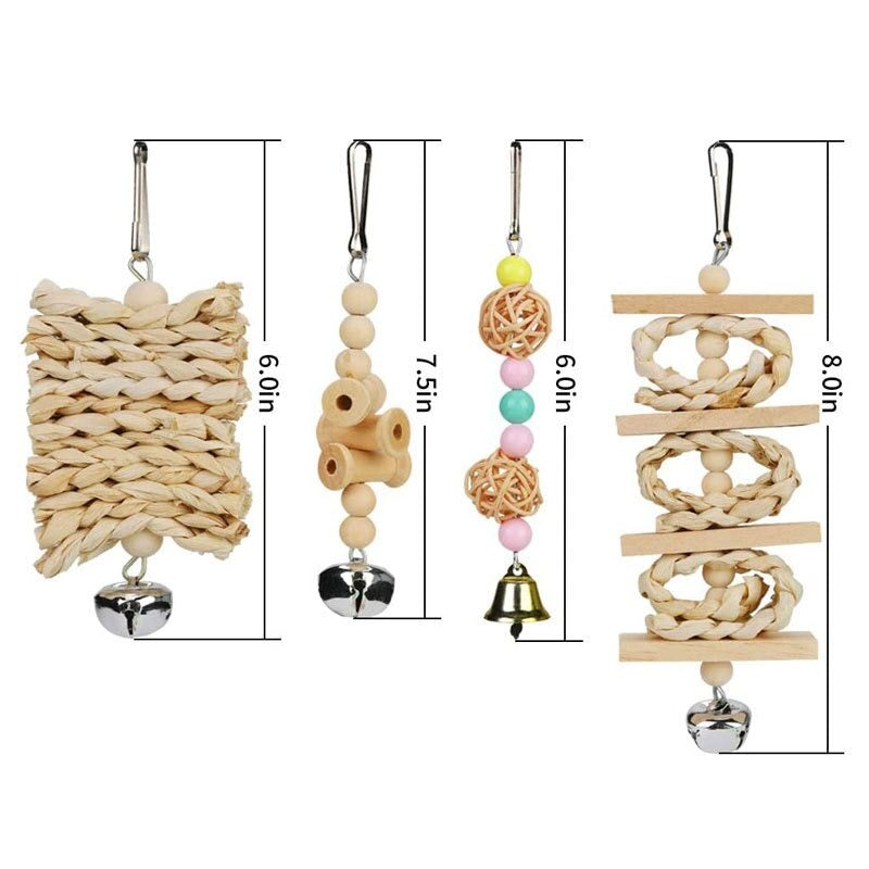 Easy To Install:By simply fastening the steel hook to the top of the pet cage, it is simple to mount these little parakeet toys, and you can examine the size information to meet your needs.