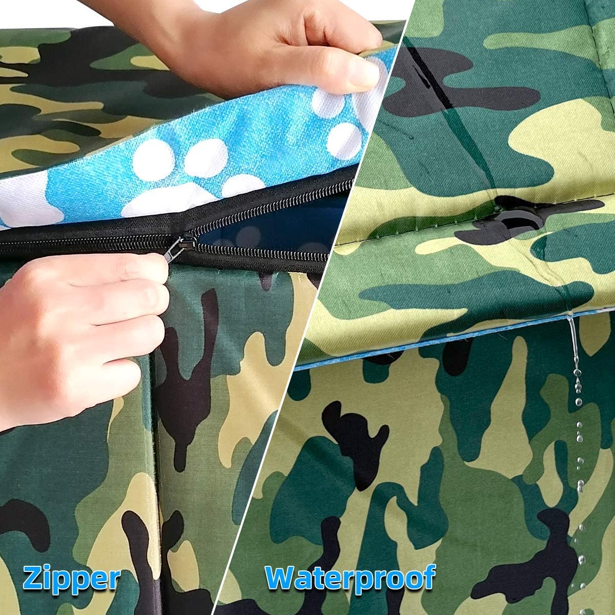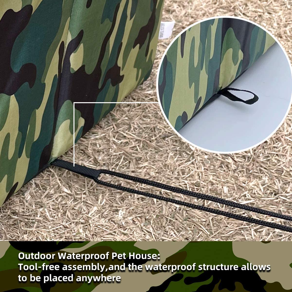 • Outdoor Waterproof Pet House】The waterproof canvas is waterproof all around, making the house water resistant.Tool-free assembly, and the waterproof structure allows to be placed anywhere, including removable mats!