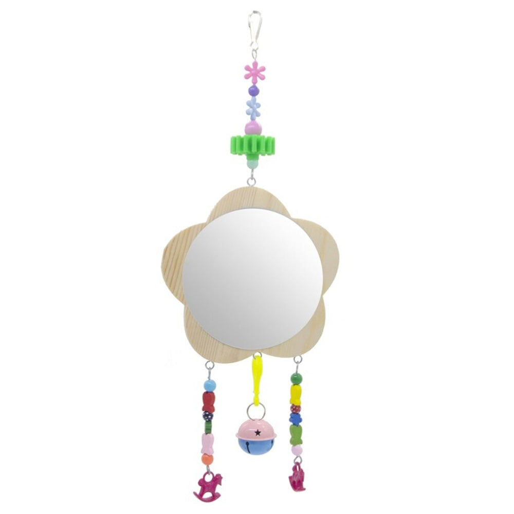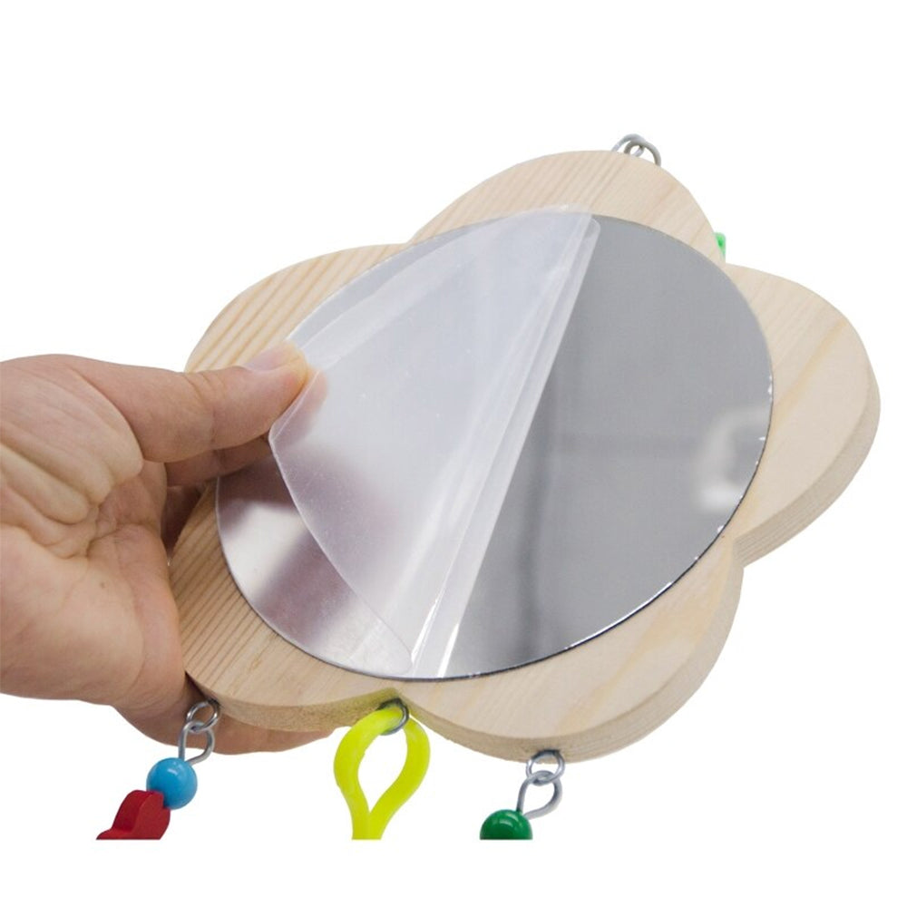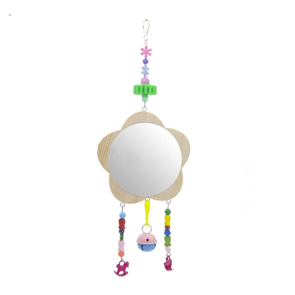 Wood Mirror Toy with Bell For Bird Toys is made of safe, non-toxic materials and is ideal for small to medium-sized birds. This is a wooden mirror toy for birds with bells attached. The bell makes a fun jingle sound that will entertain your feathered friend and the mirror is great for providing visual stimulation.