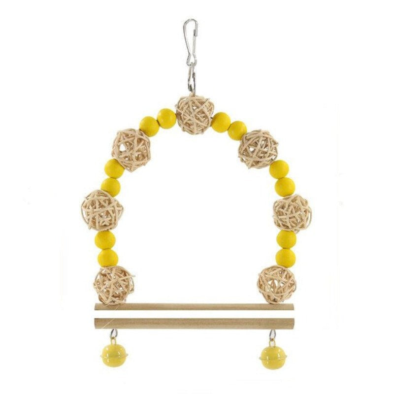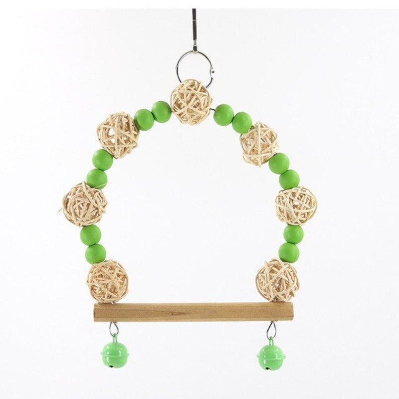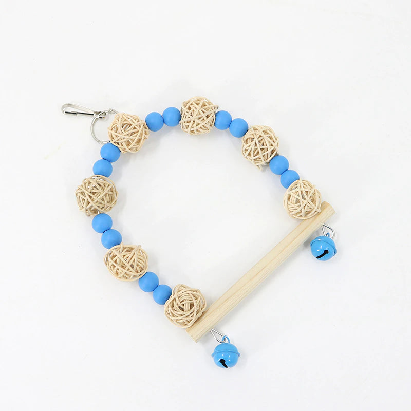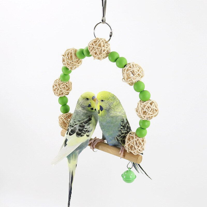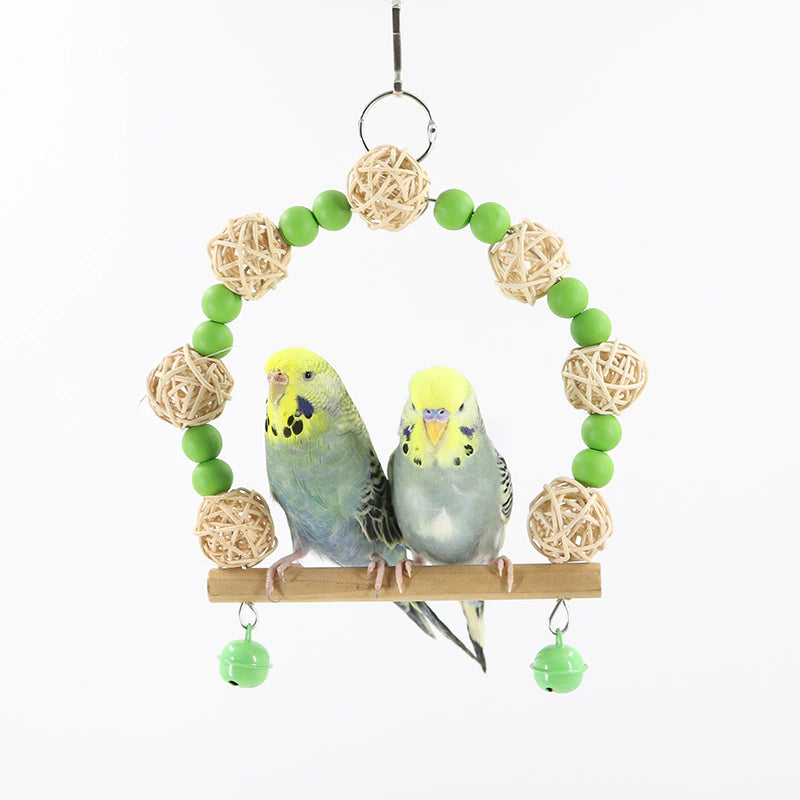 This Wooden Swinging Bird Toy is perfect for your little feathered friend! It is made of natural wood and has a metal ring for perching. The bird can swing back and forth on the ring, providing hours of amusement.